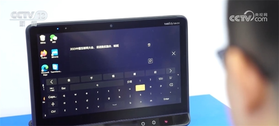 這位技術人員正在演示“眼動輸入法”,通過眼球轉動和凝視來操作電腦完成輸入。這種眼球追蹤技術通過眼控儀上配備的多組近紅外光源,借助精密算法得到目光注視點坐標位置,從而讓電腦知道眼睛在看哪里,實現(xiàn)用目光操作電腦,取代傳統(tǒng)的鍵盤鼠標。