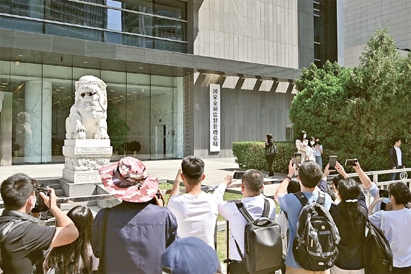 2023年5月18日,國(guó)家金融監(jiān)督管理總局正式掛牌,我國(guó)金融監(jiān)管機(jī)構(gòu)改革邁出重要一步。圖為當(dāng)日媒體記者在國(guó)家金融監(jiān)督管理總局門前拍攝。 新華社記者 李鑫/攝