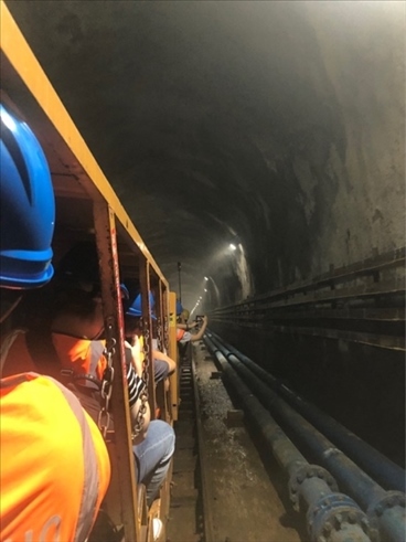 圖為采風團乘坐纜車前往江門中微子地下實驗室。(新華網 王慰攝)