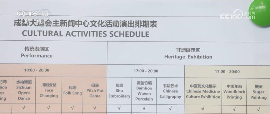 為了讓記者在繁忙的新聞報(bào)道之余,勞逸結(jié)合、舒緩身心,每天下午5時(shí)到晚間,主媒體中心都安排了豐富多彩的非遺文化活動,包括蜀錦蜀繡、川劇變臉、四川竹琴、瓷胎竹編等,讓中外記者感受獨(dú)具特色的巴蜀文化。