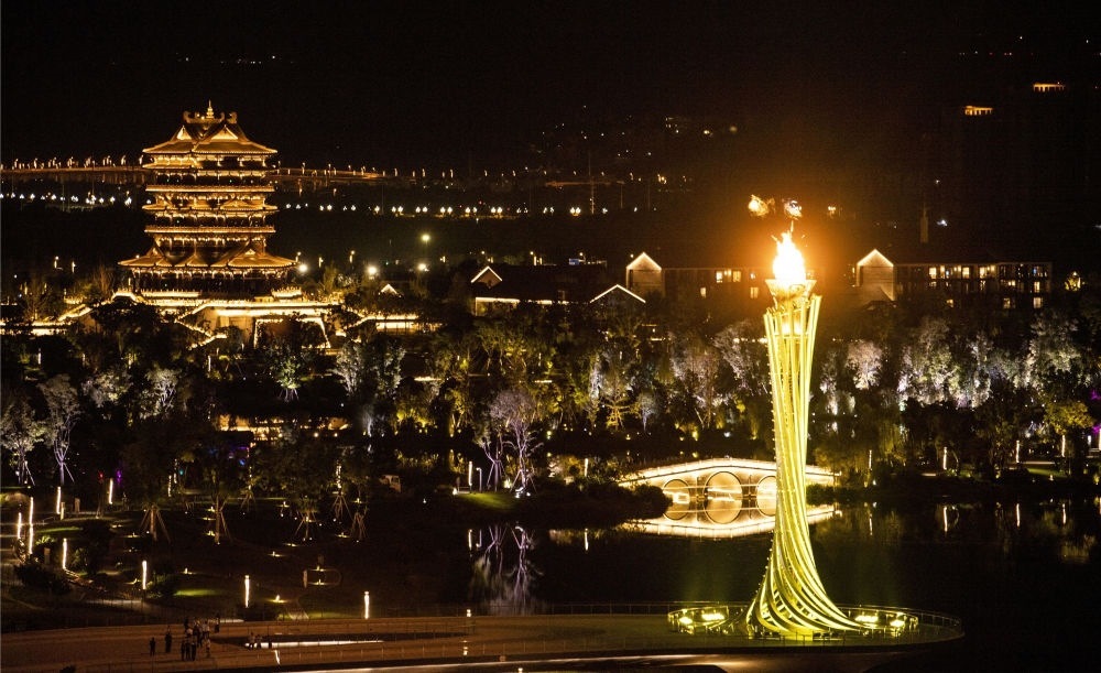 第三十一屆世界大學(xué)生夏季運動會開幕式主體育場及主火炬。