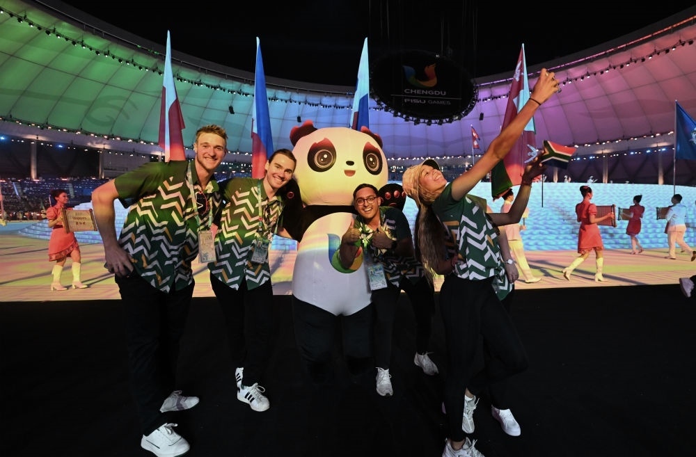 南非大學(xué)生體育代表團(tuán)在開幕式上入場。