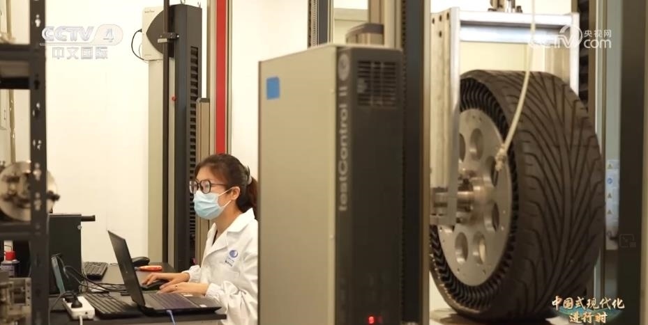 總臺央視記者 宋達:位于廣州黃埔的航空輪胎大科學中心是中國第一家航空輪胎動力學大科學裝置。目前,裝置設備已經(jīng)基本安裝完畢,主要包括高加速試驗臺、高性能輪胎地面環(huán)境模擬試驗臺等裝置,可以滿足大飛機各類性能測試。國產(chǎn)民用航空輪胎看似普通,卻與高端芯片、光刻機等高科技一同列入科研任務清單,成為中國急需解決的“卡脖子”難題。
