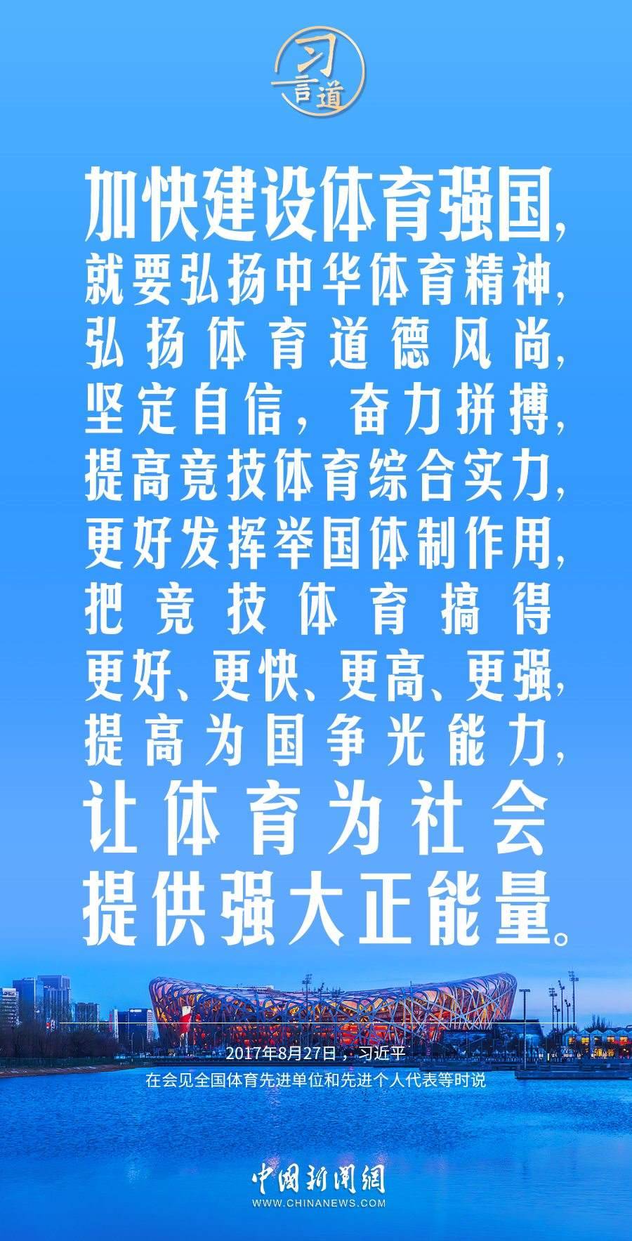 習近平總書記高度重視體育強國建設(shè),多次作出重要論述,強調(diào)讓體育為社會提供強大正能量。