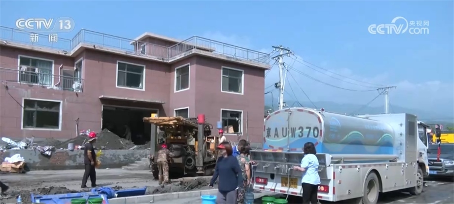 在北京市房山區(qū)西班各莊村,由于洪水侵襲,當?shù)厮淳粵_毀,230戶村民出現(xiàn)飲水困難。當?shù)厮块T立即派出應急送水車,同時集結(jié)勘探隊、機械設備,用最快的速度更新水源。?