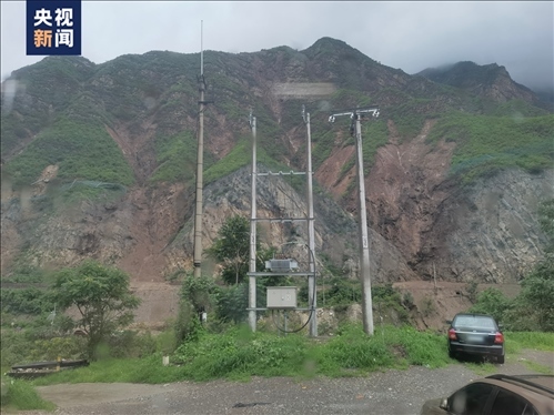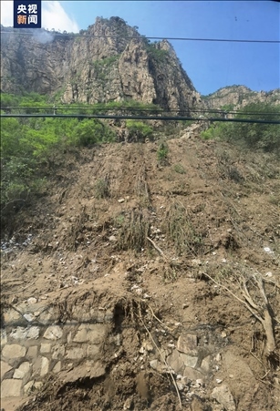 △西南側山體滑坡后,中間是石頭,兩側的土已經(jīng)被沖垮,植被已經(jīng)不見。