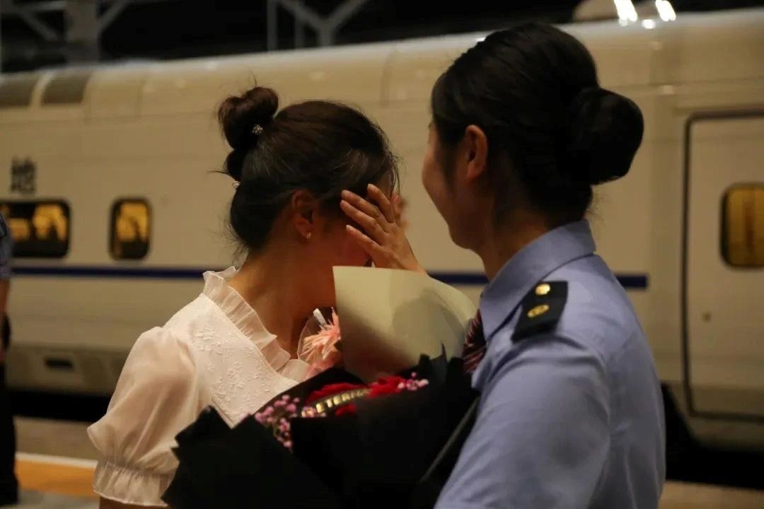 站臺上親人團聚的一幕幕