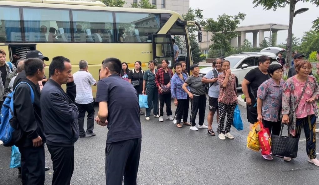 8月4日,轉(zhuǎn)移安置群眾乘大巴車來到五常市雅臣中學(xué)安置點(diǎn)。新華社記者 劉昊東 攝