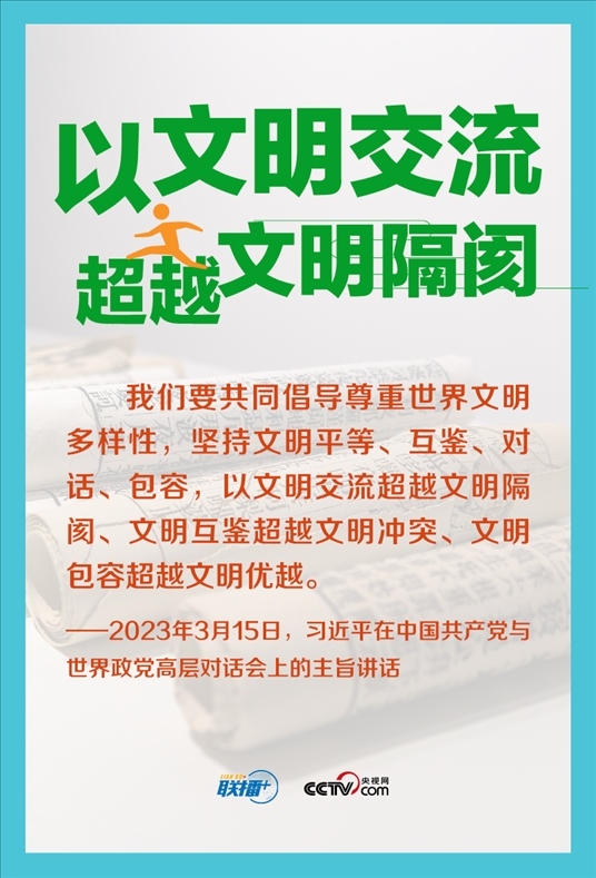 文明因交流而多彩,文明因互鑒而豐富。今年3月,在中國共產黨與世界政黨高層對話會上,習近平主席首次提出全球文明倡議,主張“共同倡導尊重世界文明多樣性”,為推動文明交流互鑒、促進人類文明進步提供中國方案。