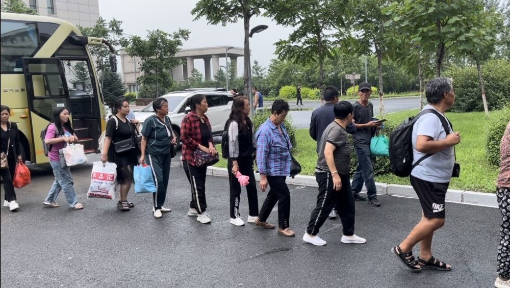 8月4日,轉(zhuǎn)移安置群眾乘大巴來(lái)到五常市雅臣中學(xué)。新華社記者劉昊東 攝