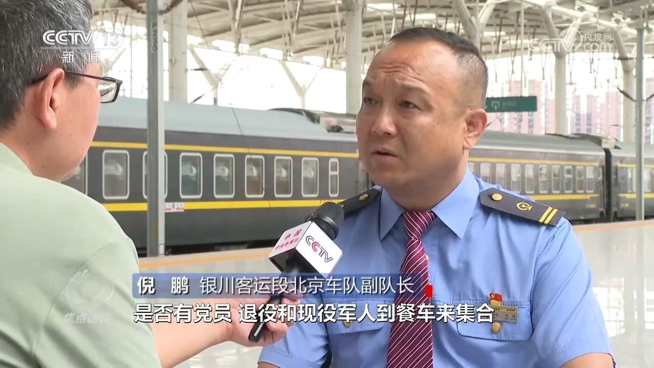 銀川客運(yùn)段北京車隊(duì)副隊(duì)長倪鵬:“20時(shí)左右,我們通過廣播召集車廂里面的旅客,是否有黨員、退役和現(xiàn)役軍人,到餐車來集合,目的是發(fā)揮黨組織作用,讓大家共同攻堅(jiān)克難,做好旅客的安撫工作?!?/p>