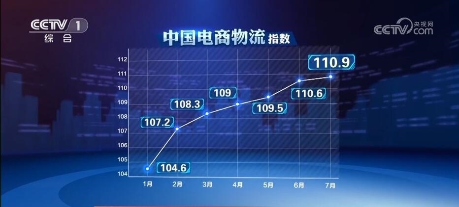 中國物流與采購聯(lián)合會8月7日公布,7月份中國電商物流指數(shù)為110.9點(diǎn),比上月提高0.3點(diǎn),保持連續(xù)上升態(tài)勢。