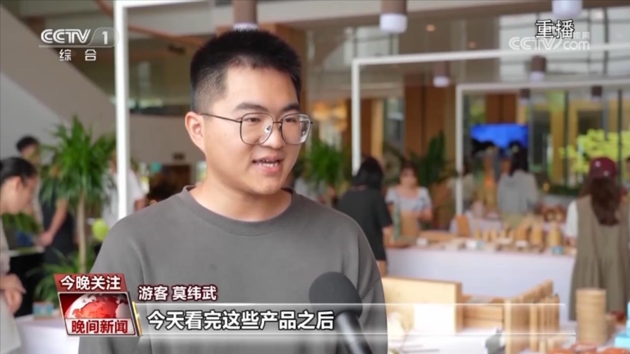 游客 莫緯武:今天看完這些產(chǎn)品之后,我就有點(diǎn)驚訝,因?yàn)橛泻芏嗌钌嫌玫降臇|西都可以用竹制品來代替。?