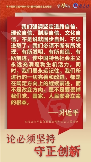 我們從事的是前無古人的偉大事業(yè),守正才能不迷失方向、不犯顛覆性錯(cuò)誤,創(chuàng)新才能把握時(shí)代、引領(lǐng)時(shí)代。我們要以科學(xué)的態(tài)度對待科學(xué)、以真理的精神追求真理,堅(jiān)持馬克思主義基本原理不動(dòng)搖,堅(jiān)持黨的全面領(lǐng)導(dǎo)不動(dòng)搖,堅(jiān)持中國特色社會(huì)主義不動(dòng)搖,緊跟時(shí)代步伐,順應(yīng)實(shí)踐發(fā)展,以滿腔熱忱對待一切新生事物,不斷拓展認(rèn)識的廣度和深度,敢于說前人沒有說過的新話,敢于干前人沒有干過的事情,以新的理論指導(dǎo)新的實(shí)踐。