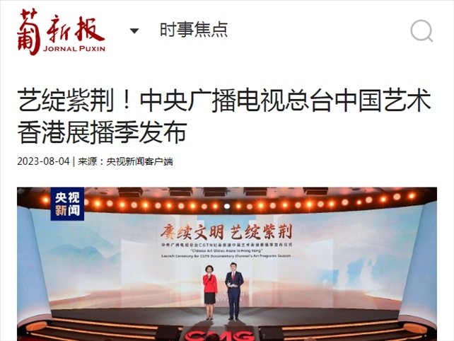 近期,中央廣播電視總臺(tái)CGTN紀(jì)錄頻道“賡續(xù)文明 藝綻紫荊”中國(guó)藝術(shù)香港展播季在京港兩地共同發(fā)布。30余部展現(xiàn)中華優(yōu)秀傳統(tǒng)文化的總臺(tái)紀(jì)錄片、專題片正陸續(xù)通過(guò)CGTN紀(jì)錄頻道在香港播出。
