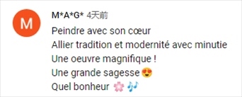 法語(yǔ)網(wǎng)友M*A*G*:“用心作畫,將傳統(tǒng)與現(xiàn)代結(jié)合,華麗的作品,偉大的智慧,這是多么幸福的一件事?。 ?/p>