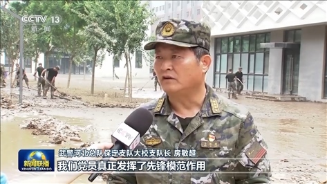 武警河北總隊保定支隊大校支隊長 房敏超:每一個任務區(qū)域,第一個下水的肯定是黨員,第一個背著老人上來的也是黨員,在這次搶險救災行動當中,我們黨員真正發(fā)揮了先鋒模范作用,用實際行動踐行絕對忠誠。