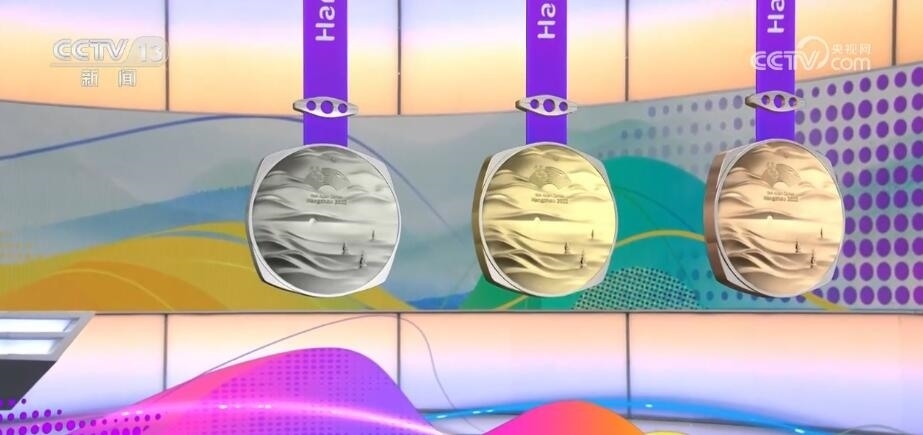 杭州亞運(yùn)會(huì)獎(jiǎng)牌名為“湖山”。“湖山”將良渚文化的方形玉琮和圓形的獎(jiǎng)?wù)氯跒橐惑w,正面用凸出的線條勾勒出“三面云山一面城”的杭城畫(huà)卷,湖水漣漪,山巒起伏。獎(jiǎng)牌上方的束扣是一個(gè)帶有倒影的三孔橋,設(shè)計(jì)取自京杭大運(yùn)河最南端的拱宸橋。一塊獎(jiǎng)牌,將杭州的三處世界文化遺產(chǎn):良渚、西湖、大運(yùn)河都融入其中。