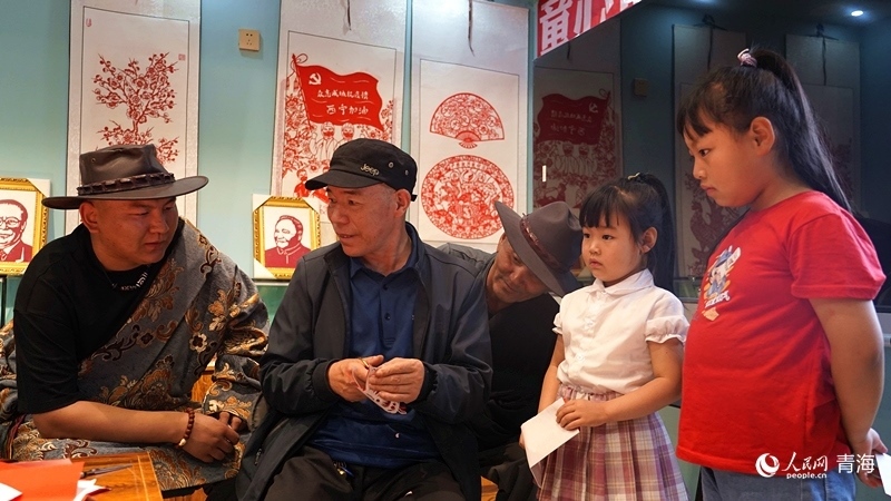 “紅紙對折,再對折,先剪出大概輪廓,再剪蝴蝶的觸角,剪刀要慢……”青海省海南藏族自治州貴德縣河陰鎮(zhèn)歇春園社區(qū)紅石榴之家內(nèi),剪紙藝人楊成君正帶領社區(qū)幾名小孩學習剪紙,幾位藏族居民也在旁邊饒有興趣地旁觀。