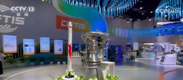 總臺(tái)記者 王豐:這片區(qū)域是綜合展的一個(gè)成就展的專題,這里集中展示了我國在服務(wù)業(yè)擴(kuò)大開放和服務(wù)貿(mào)易創(chuàng)新發(fā)展方面所取得的一系列成就。比如說這個(gè),這是我國民營(yíng)企業(yè)藍(lán)箭航天自主研發(fā)的朱雀二號(hào)火箭,旁邊是自主研發(fā)的天鵲發(fā)動(dòng)機(jī)。今年7月12日,朱雀二號(hào)成功發(fā)射升空,是世界上首款將載荷送入預(yù)定軌道的液氧甲烷火箭。