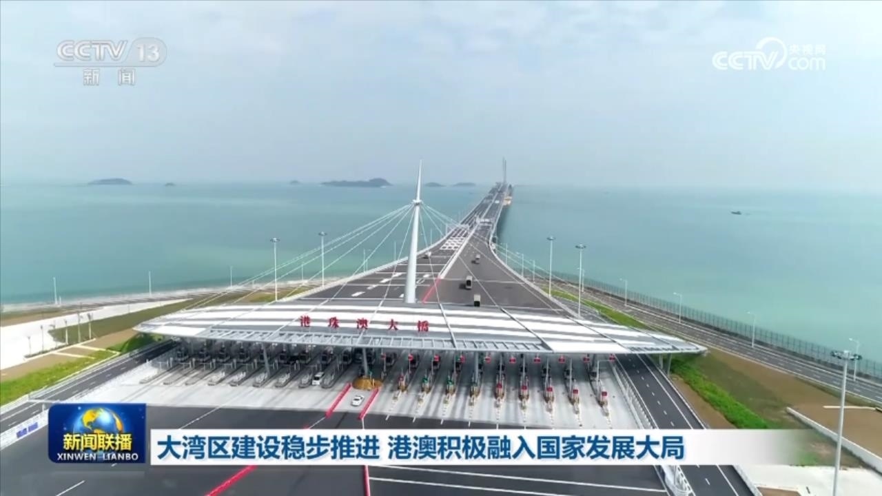 央視網(wǎng)消息(新聞聯(lián)播):粵港澳大灣區(qū)建設(shè)穩(wěn)步推進,香港、澳門積極融入國家發(fā)展大局。