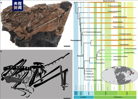 據(jù)介紹,鳥翼類是由恐龍演化到鳥類過程中的一個過渡物種,我國早期發(fā)現(xiàn)最早的鳥翼類是在“燕遼生物群”,大概距今1.6億年,之后,“熱河生物群”發(fā)現(xiàn)最早的原始鳥類化石是在距今1.3億年左右,兩者演化過程中大概有3000萬年的空白。福建省地質調查研究院高級工程師徐立明表示,經過研究確定奇異福建龍為距今1.48億年到1.5億年之間,因此奇異福建龍的發(fā)現(xiàn)彌補了鳥類起源在時間和空間上的部分空白,為研究鳥類起源與演化提供了重要信息。