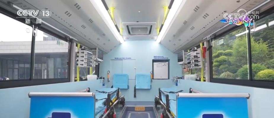 大型5G移動急救復(fù)蘇單元由兩輛公交車改裝而成,包含1輛急救治療車和1輛急救指揮車。急救治療車內(nèi)設(shè)有2個擔(dān)架位和1個搶救床位,可同時轉(zhuǎn)運多名危重病人。車內(nèi)配備了功能全面、集成度高的急救和轉(zhuǎn)運平臺,可以在車內(nèi)開展體外呼吸循環(huán)支持和緊急救命性手術(shù)等復(fù)雜急救手段。