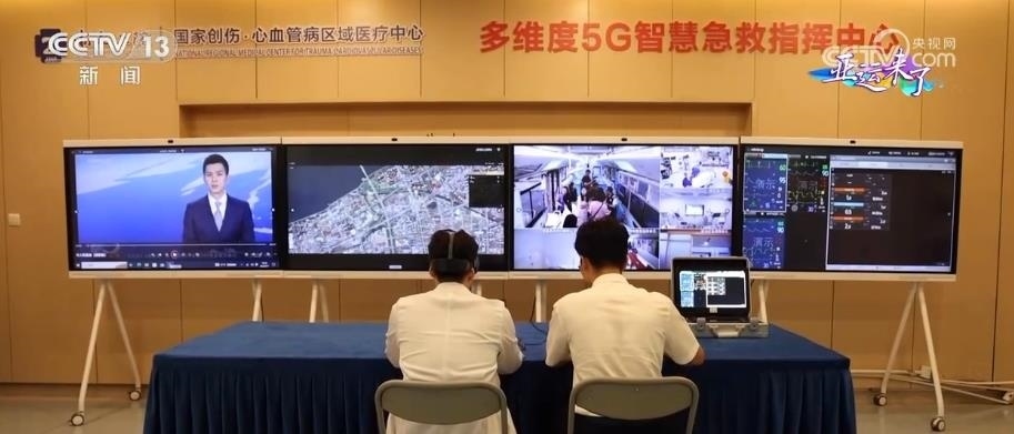 在大型5G移動急救復(fù)蘇單元工作時,院內(nèi)的5G急救指揮中心的電子大屏上,能夠?qū)崟r查看急救治療車內(nèi)的情況、患者監(jiān)護(hù)生命體征、車輛實時位置等信息,并進(jìn)行實時的線上指導(dǎo)。