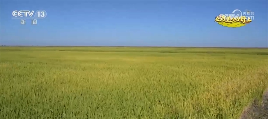 總臺央視記者 蔣樹林:這里是國家耐鹽堿水稻技術創(chuàng)新中心東北中心的千畝示范園,我手指的這個方向是沒有利用過的原始風貌的鹽堿荒灘,這邊是已經(jīng)改造后生長水稻的鹽堿地。如果后期沒有大的自然災害,今年豐收會有一定基礎。