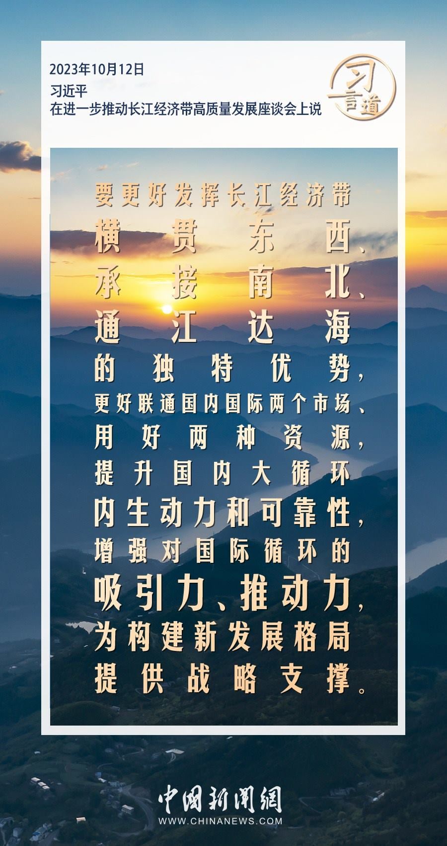 中共中央總書記、國家主席、中央軍委主席習(xí)近平12日下午在江西省南昌市主持召開進(jìn)一步推動長江經(jīng)濟(jì)帶高質(zhì)量發(fā)展座談會并發(fā)表重要講話。習(xí)近平指出——