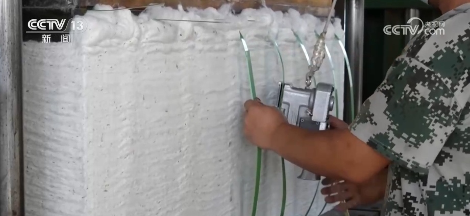 在庫爾勒市普惠鄉(xiāng)的棉花地里,采棉機(jī)快速將棉花從棉稈上脫離,采摘、壓縮、打包,全流程作業(yè)一氣呵成。