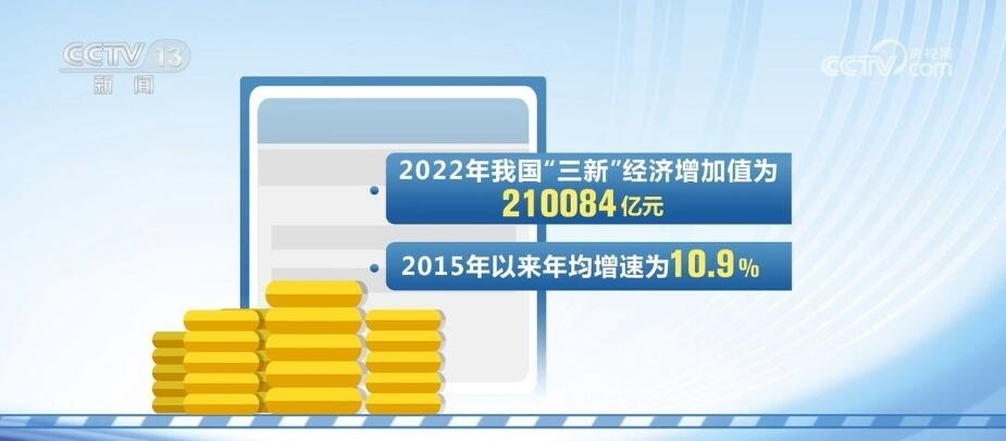 2022年,我國(guó)“三新”經(jīng)濟(jì)增加值為210084億元,2015年以來年均增速為10.9%,比同期GDP現(xiàn)價(jià)增速高2.5個(gè)百分點(diǎn),相當(dāng)于GDP的比重為17.36%?!叭隆苯?jīng)濟(jì)不斷發(fā)展,已成為帶動(dòng)經(jīng)濟(jì)轉(zhuǎn)型升級(jí)、增強(qiáng)經(jīng)濟(jì)活力的重要力量。