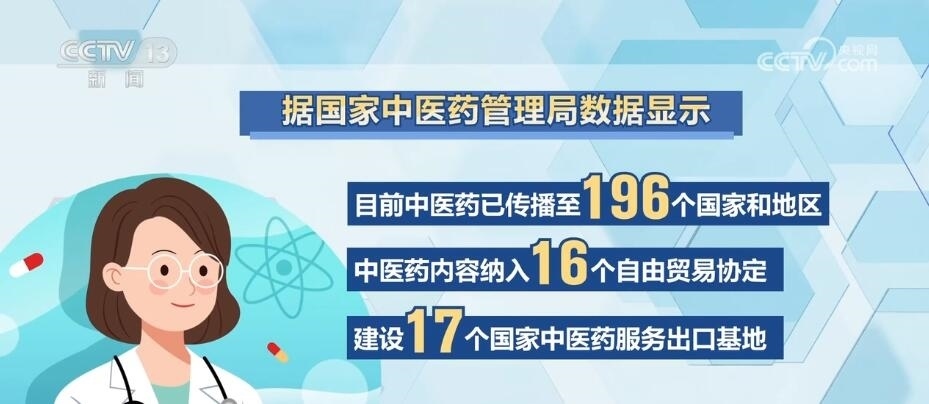 據(jù)國家中醫(yī)藥管理局?jǐn)?shù)據(jù)顯示,目前中醫(yī)藥已傳播至196個國家和地區(qū),中醫(yī)藥內(nèi)容納入16個自由貿(mào)易協(xié)定,建設(shè)17個國家中醫(yī)藥服務(wù)出口基地。與國際標(biāo)準(zhǔn)化組織合作制定頒布64項中醫(yī)藥國際標(biāo)準(zhǔn),復(fù)方青蒿素快速清除瘧疾項目幫助非洲逾百萬人口地區(qū)短期內(nèi)實現(xiàn)了從高度瘧疾流行區(qū)向低度瘧疾流行區(qū)的轉(zhuǎn)變。