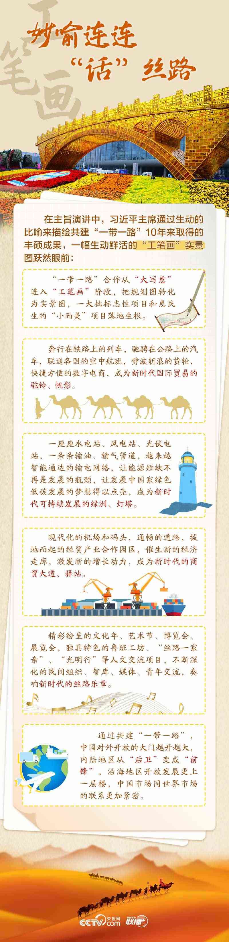 站在共建“一帶一路”倡議走過十年這個標志性節(jié)點,這幅“工筆畫”呈現(xiàn)怎樣的實景圖?高質量共建“一帶一路”如何再出發(fā)?央視網(wǎng)《聯(lián)播+》欄目從五個維度為您速讀習主席講話,與您一同學習。