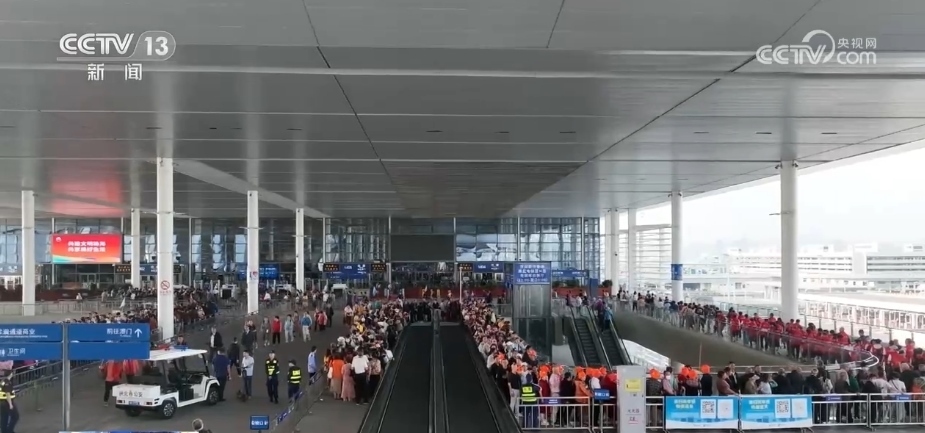 每天早上8時是口岸大廳人流最多的時候,往來珠海、澳門、香港三地的旅行團(tuán)都匯聚在這里拍照“打卡”,然后再各自出發(fā)前往目的地。