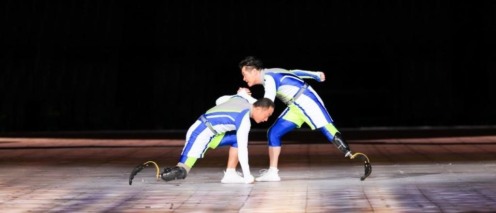 在杭州亞殘運會吉祥物“飛飛”的帶領(lǐng)下