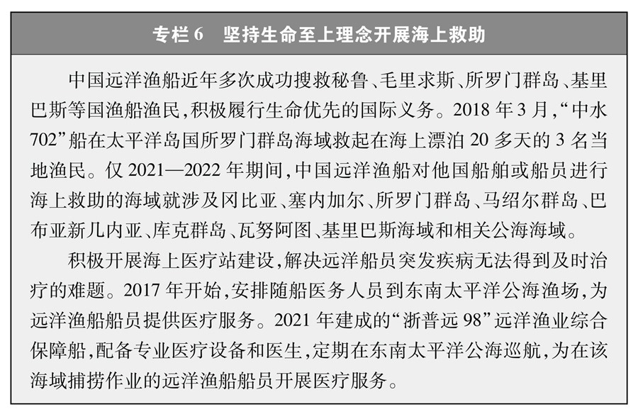 中國持續(xù)提升遠洋漁業(yè)基礎設施現(xiàn)代化水平,著眼于安全、環(huán)保、可持續(xù)和勞工保護等目標,在控制遠洋漁船規(guī)模的同時,不斷改善漁船安全和船員生活環(huán)境。