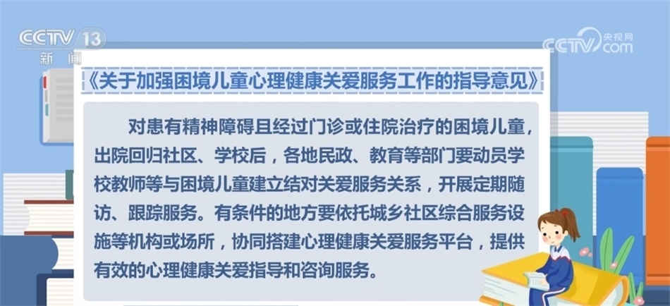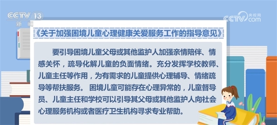 央視網(wǎng)消息:近日,民政部等五部門聯(lián)合印發(fā)《關(guān)于加強困境兒童心理健康關(guān)愛服務(wù)工作的指導(dǎo)意見》,通過加強心理健康教育、開展心理健康監(jiān)測等措施,全面提升困境兒童心理健康水平和身心健康素質(zhì)。