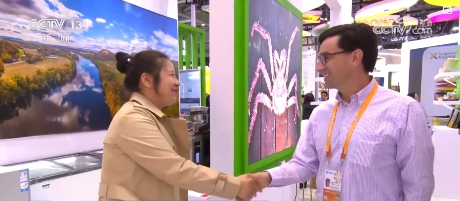 進(jìn)博會(huì)的最后一天,記者來(lái)到美國(guó)食品和農(nóng)產(chǎn)品館時(shí),美國(guó)參展商克里斯依舊在緊張地和客戶(hù)對(duì)接洽談,此時(shí)距離閉幕只剩下不到6個(gè)小時(shí)。