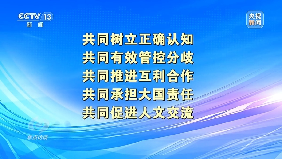 中國人民大學(xué)國際關(guān)系學(xué)院教授 刁大明:現(xiàn)在看舊金山這次會晤本身,中方非常清晰地從負(fù)責(zé)任大國角度出發(fā),從對歷史、對人民、對世界角度出發(fā),提出了一個中美兩國正確相處之道?!拔鍌€共同”是中國提出的一個正確相處之道,也是中國從負(fù)責(zé)任角度出發(fā),為穩(wěn)定中美關(guān)系,為更多增進(jìn)全球福祉提出中國方案。