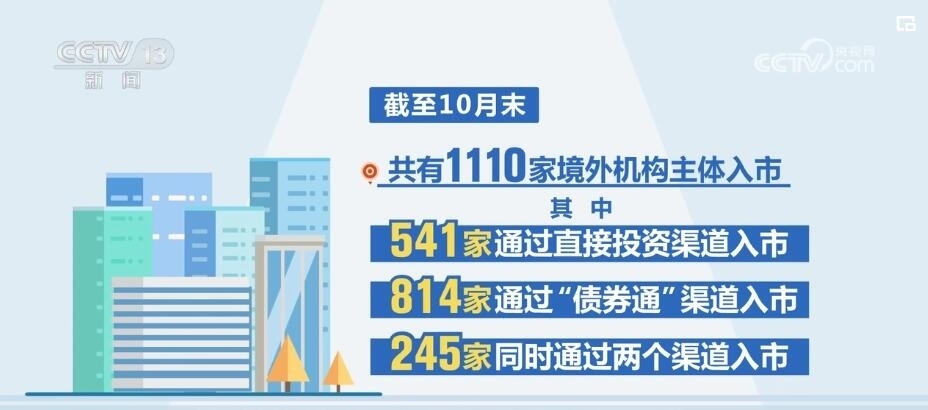 央行上??偛繑?shù)據(jù)顯示,在資金凈流入的同時,銀行間債券市場的境外機構(gòu)參與數(shù)量也在不斷增加,截至10月末,共有1110家境外機構(gòu)主體入市。其中,541家通過直接投資渠道入市,814家通過“債券通”渠道入市,245家同時通過兩個渠道入市。近年來,我國銀行間債券市場對外開放力度不斷加大,吸引了更多境外投資者。