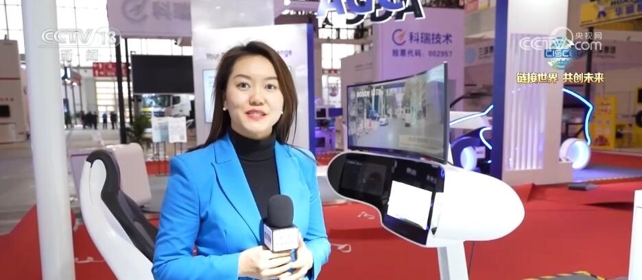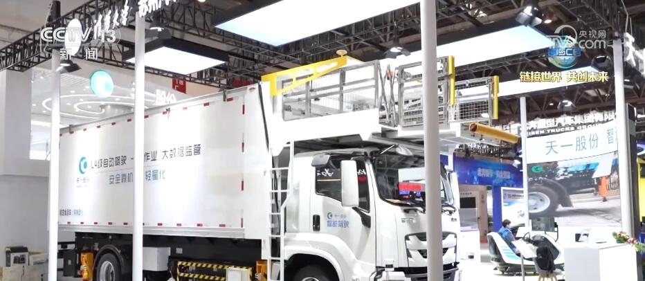 總臺央視記者 張歆:在本屆鏈博會上,我們也看到了許多智能專用車。大家可以看到在我身旁就是一臺智能航空食品專用車,這臺重量達到21噸左右的“大塊頭”裝了許多個雷達,通過5G的算法就能夠實現(xiàn)無人駕駛和無人作業(yè)。