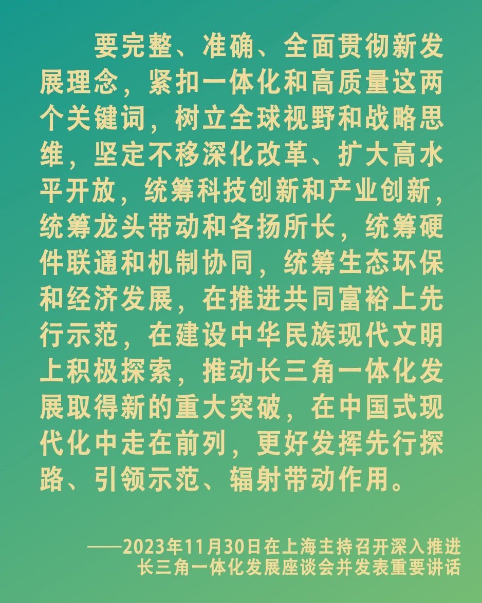 從基礎(chǔ)設(shè)施到公共服務(wù),從產(chǎn)業(yè)集群到創(chuàng)新協(xié)同。長三角三省一市緊扣總書記強(qiáng)調(diào)的“一體化”和“高質(zhì)量”兩個(gè)關(guān)鍵詞,既謀劃長遠(yuǎn),又干在當(dāng)下,一體化發(fā)展的動(dòng)力澎湃激蕩,百舸爭(zhēng)流的局面加速形成。
