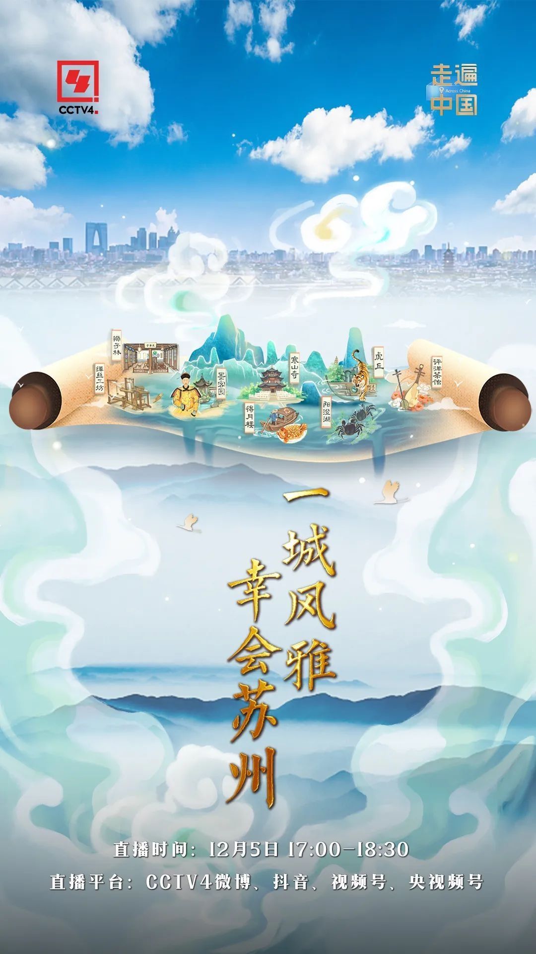 ? ? 12月4日至7日,中央廣播電視總臺(tái)華語環(huán)球節(jié)目中心《走遍中國》欄目即將推出融媒體系列節(jié)目《走遍中國——詩畫蘇州》。