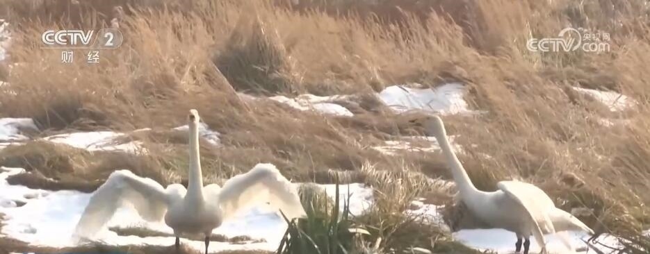 總臺記者 柳棟:我所在的位置是山東榮成大天鵝國家級自然保護(hù)區(qū),多年來這里形成了煙墩角、天鵝湖和櫻花湖三處大天鵝的集中區(qū)。今年遷徙的1萬多只大天鵝,目前九成以上已經(jīng)抵達(dá)這里,僅我所在的保護(hù)區(qū)范圍里就有超過6000多只。這里的工作人員告訴我,這些大天鵝是從3000多公里外的西伯利亞等地區(qū)長途飛行45天左右才能抵達(dá)的。飛抵后,大天鵝會在這里越冬,直到來年三四月份才會離開。因此,這里的大天鵝不再忙于練習(xí)飛翔和補(bǔ)充體力,而是從容不迫地開啟了度假模式,游客們也可以近距離與它們進(jìn)行互動。