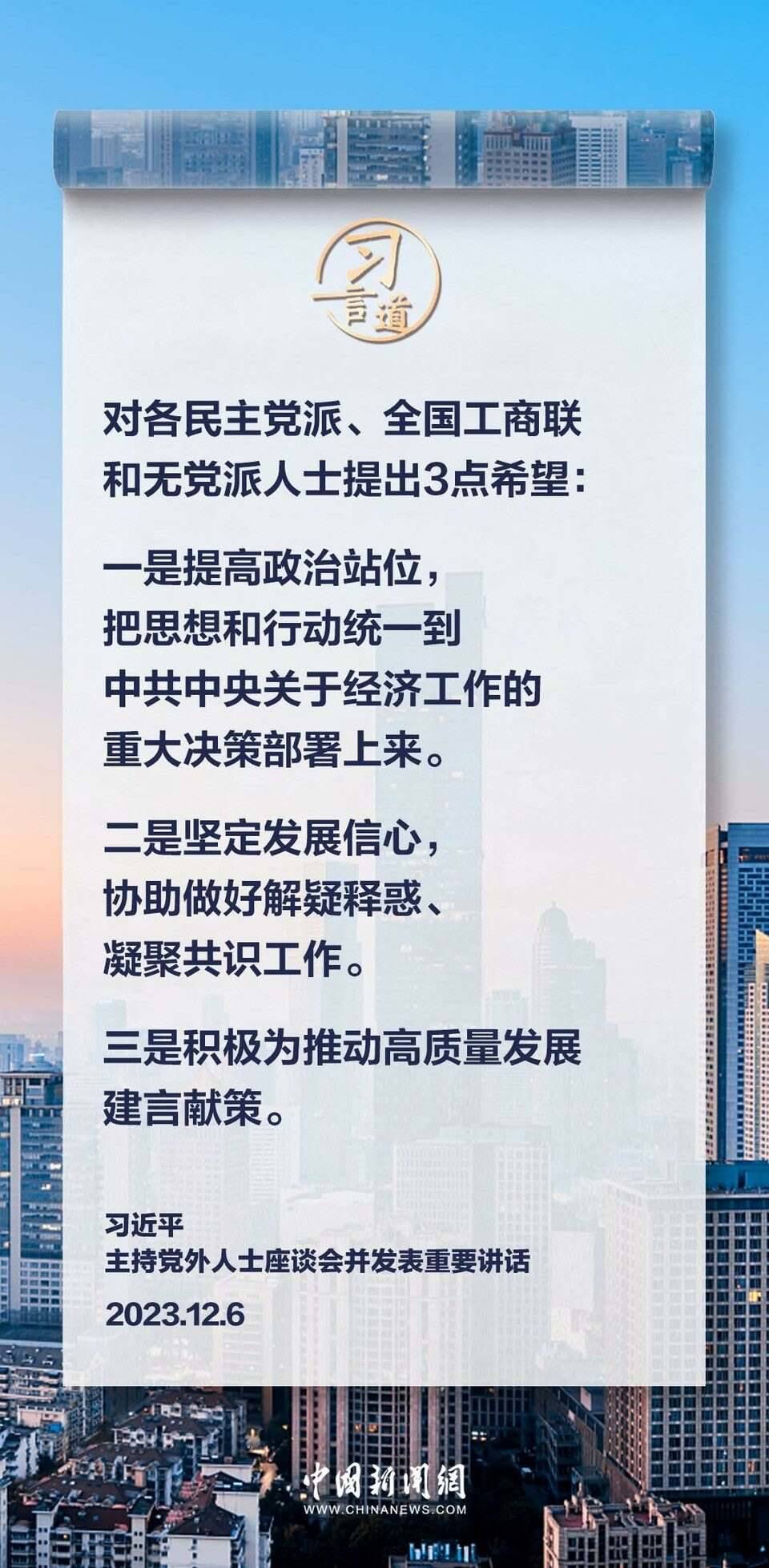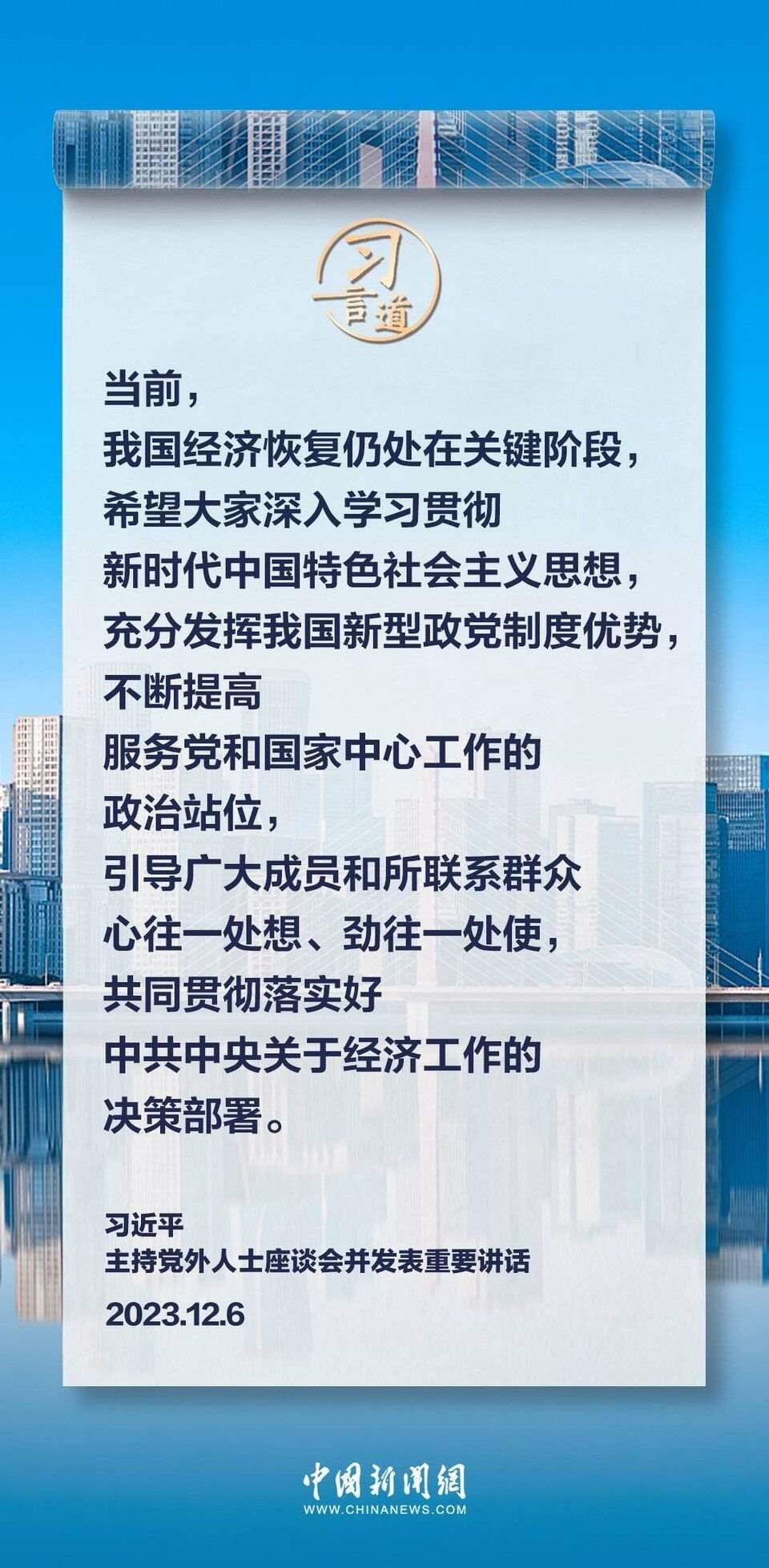 12月6日,中共中央在中南海召開黨外人士座談會,就今年經(jīng)濟(jì)形勢和明年經(jīng)濟(jì)工作聽取各民主黨派中央、全國工商聯(lián)負(fù)責(zé)人和無黨派人士代表的意見和建議。中共中央總書記習(xí)近平主持座談會并發(fā)表重要講話。