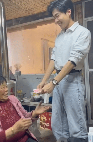 孫子將第一筆工資交給了奶奶