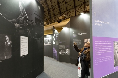 2023年10月26日,觀眾在西班牙馬德里參觀《世界記憶 和平愿景——南京大屠殺史實(shí)展》。 新華社記者孟鼎博 攝
