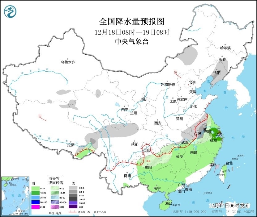 預(yù)計,17日夜間至19日,南方大部地區(qū)有雨雪天氣,江淮地區(qū)將有雨夾雪或雪,江南、華南等地將有小雨,局地中雨。17日至18日,貴州中北部和東部、湖南西部和南部等高海拔地區(qū)有凍雨,其中夜間至凌晨時段凍雨范圍較大。未來我國大部低溫持續(xù)偏低,受雨雪天氣疊加影響,外出請注意路面濕滑和交通安全。
