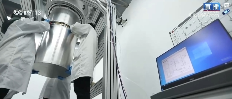 完成復(fù)雜的運(yùn)算僅靠主板是不夠的。量子芯片相當(dāng)于傳統(tǒng)計(jì)算機(jī)的CPU,也就是“大腦”,但是想讓芯片正常工作,所需要的環(huán)境是非??量痰摹T诂F(xiàn)場(chǎng),工作人員正在調(diào)試的就是給這塊芯片提供理想工作環(huán)境的低溫低噪運(yùn)行裝置,芯片就是在這個(gè)白色圓桶狀主體內(nèi)工作,圓筒里會(huì)形成接近“絕對(duì)零度”,也就是約在零下273.15℃的環(huán)境,并且還要與外界屏蔽隔離。除了低溫、低噪之外,這套系統(tǒng)上還安裝了很多減震設(shè)備,也是最大程度避免外界環(huán)境影響到芯片的運(yùn)行。